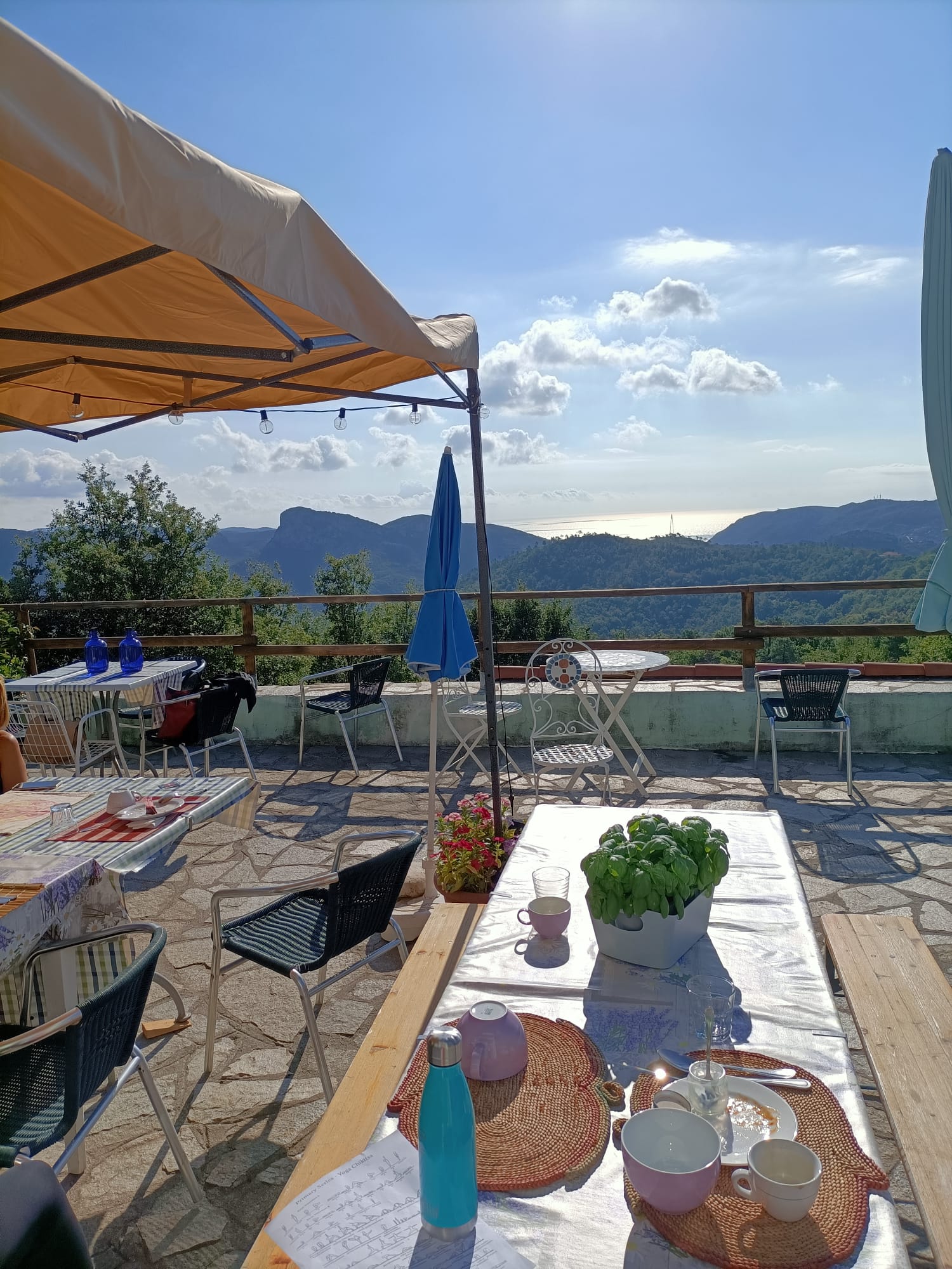 Ogni mattina praticheremo immersi nel verde e faremo colazione in una piccola veranda, proprio davanti alle colline e al mare.
